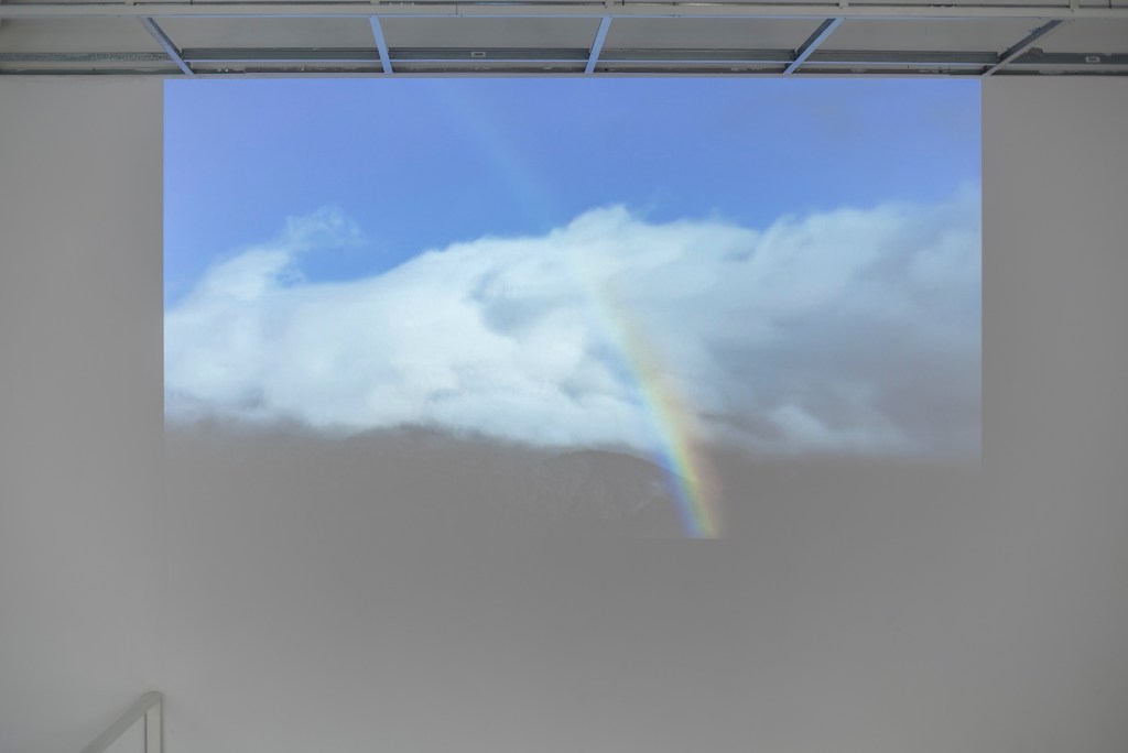 Time-lapse video (presented as an endless loop), showing a long-lasting rainbow over the campus of the Chinese Culture University (CCU) in 2017; material by Chou Kun-Hsuan