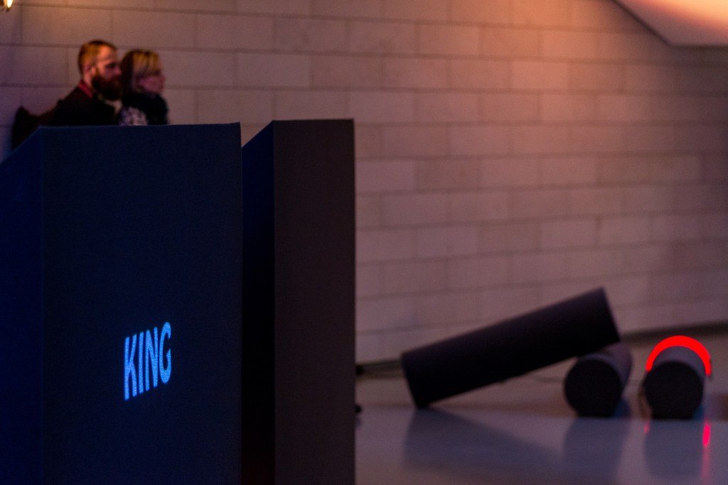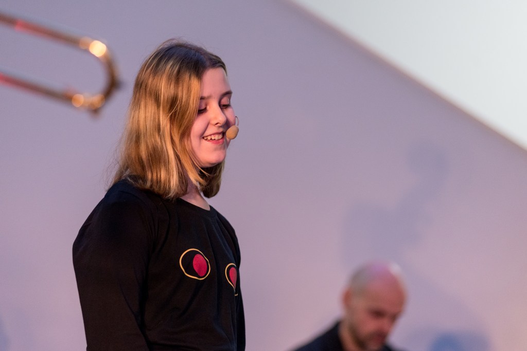 What sounds are produced by the ghostly buildings looming over the city’s busy streets? The students are fascinated by the abandoned buildings in the central part of Vilnius, among which the Vilnius Palace of Concerts and Sports (1971) stands out. In the project, the graffiti on this building are transformed into roll captions of words in the video projection, thus generating a new narrative about the city and its residents – “urban tracers”, mentioned in one of the tags on the building. The architectural elements of this abandoned palace – the “conductors” between the inside and the outside, i.e. windows or holes – in the project turn into three-dimensional objects, among which the members of the music school jazz band are accommodated.