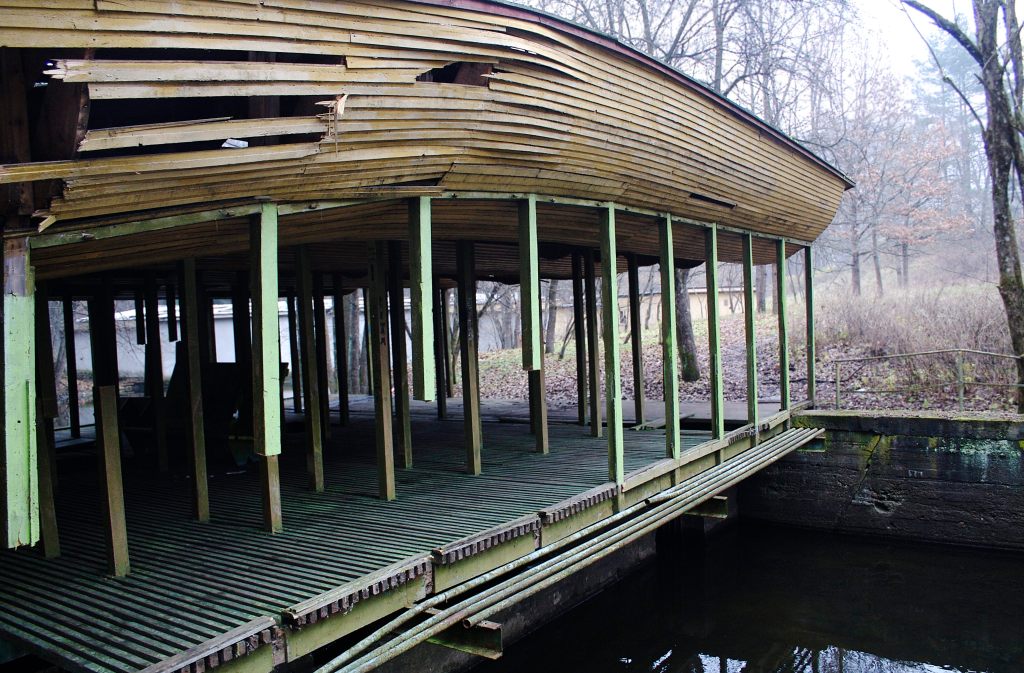 The photographs document the abandoned places of the largest and most popular Lithuanian resort of Druskininkai: the burned-down “Voveraitė” cinema theatre, the Karolis Dineika recreation park and the kitchen premises of the “Nemunas” sanatorium. These places are evocative symbols of mismanagement – once popular sights that have become a kind of hell set against the beautiful background of the resort. This project seeks to draw attention to the inadequacy of commercial real estate developers in the face of social architecture. These sites are like socio-ecological ‘black spots’ in the Druskininkai environment.