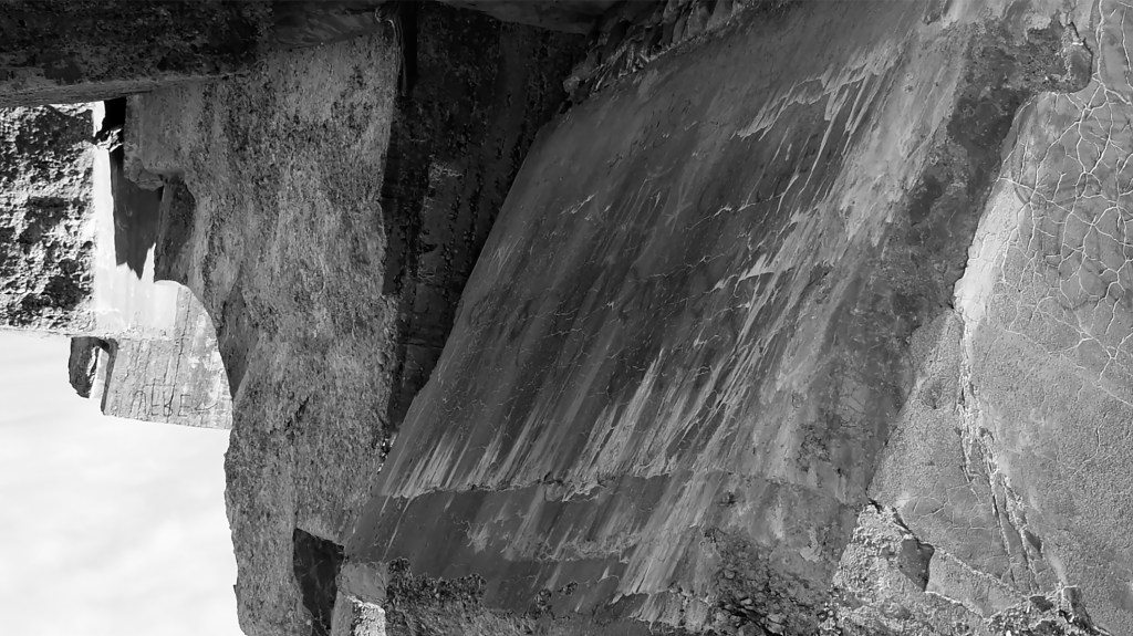 In the experimental film by Kristina Inčiūraite, the scary uncertainty is expressed at remote locations with the skin-burning Sosnowsky’s hogweed (Heracleum sosnowskyi), which is widespread in Eastern Europe. Abandoned places have also been filmed in northwest Latvia. These are the decaying fortifications of a naval port that have survived since Imperial Russian times in the northern part of Liepaja, and the surroundings of the Irbene radio telescope, with a diameter of 32 metres, which is a relic from Soviet times. The abandoned windows of the buildings are like black eyeholes broadcasting emptiness, the kaleidoscopic reduction of the radio telescope leading towards disappearance. Long shots of the treatment of human skin invaded by a tumour transforming the body. These visual motifs from the film show the state of the unknown.